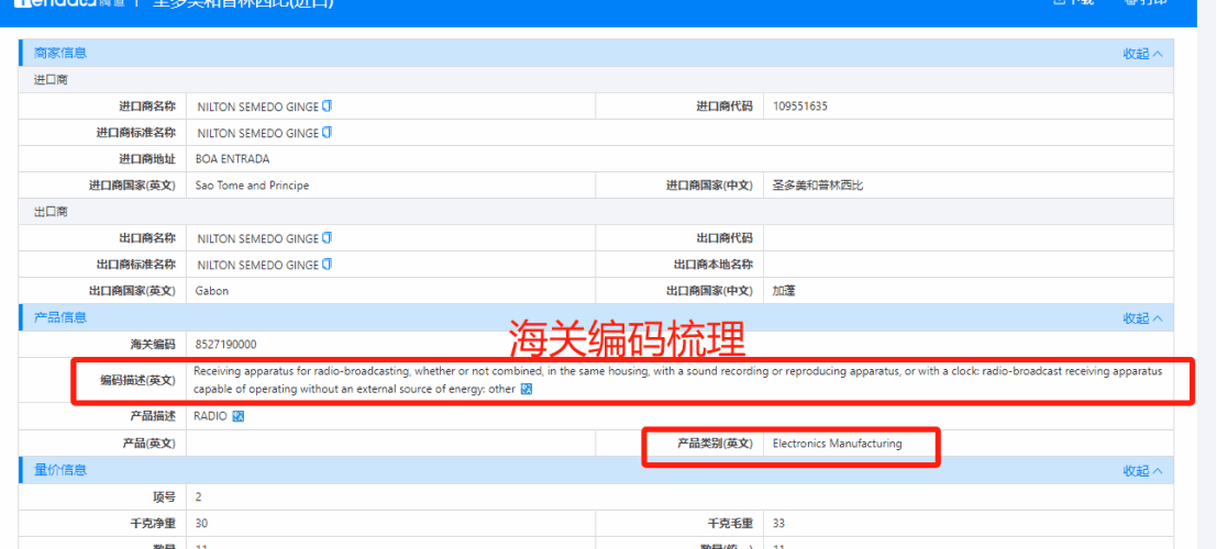 圣多美和普林西比数据标准化上新 - 企业名称,数量单位,海关编码标准化